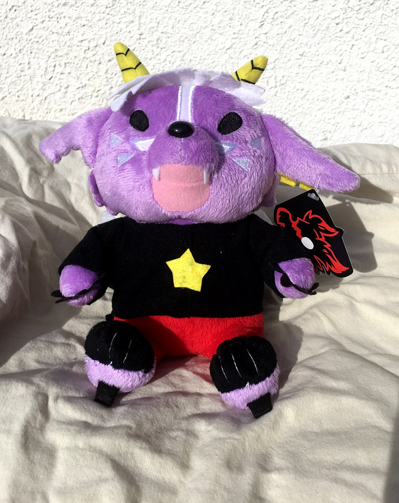 A cuddly plushie of Buwaro from Slightly Damned. - Approximately 8" tall! - Made from super-soft minky fabric! - Bendable tail!