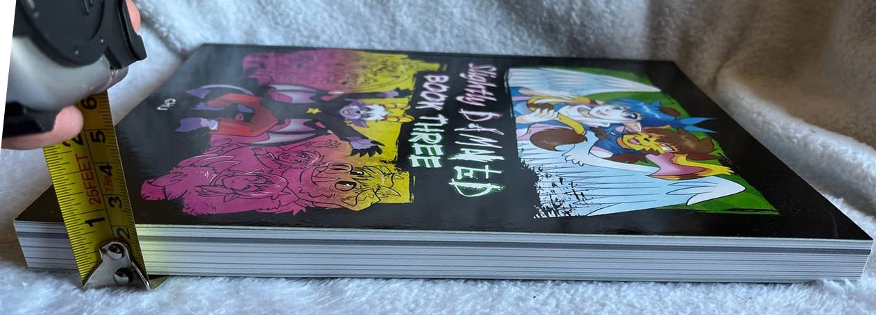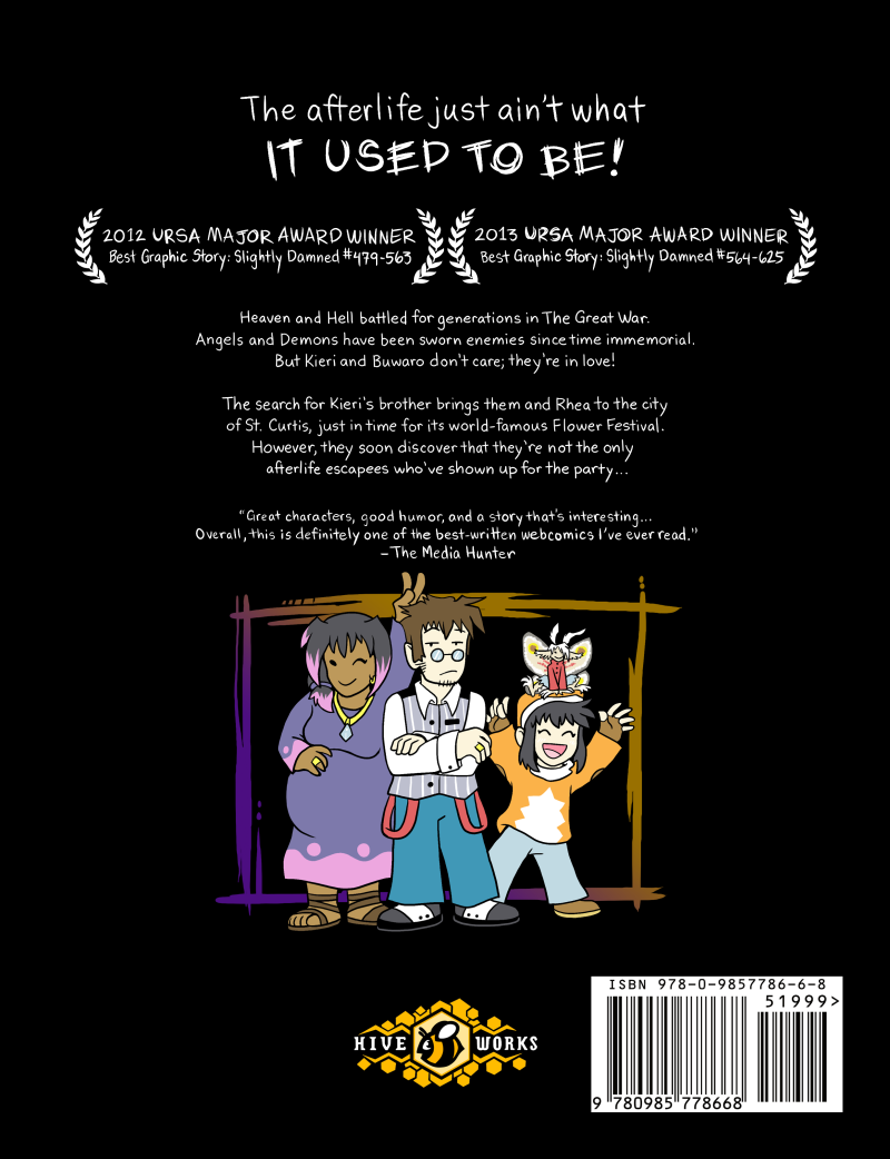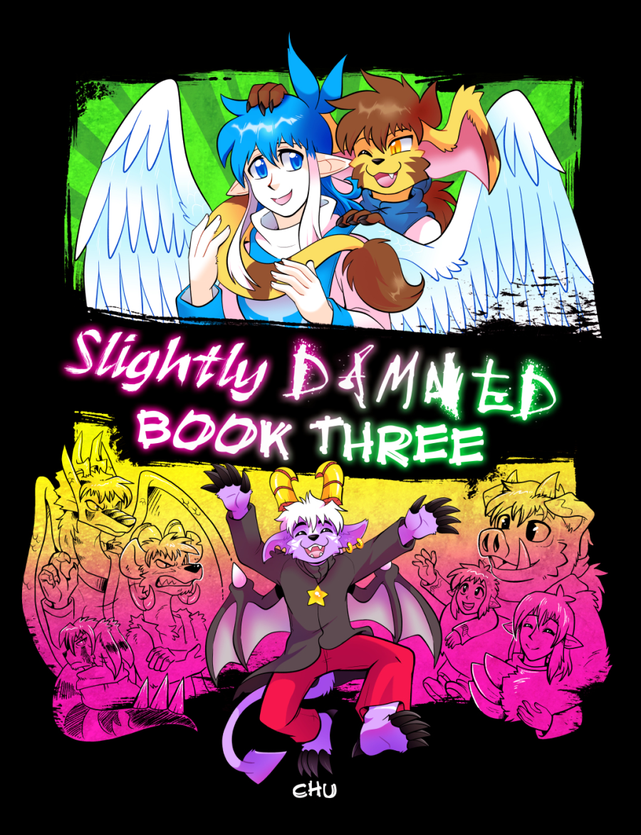 Slightly Damned: Book Three contains original comic pages #377 through #571 with improved word balloons and new chapter covers. There is exclusive content at the back of the book not available elsewhere, like 4-panel comic strips and bonus pages.